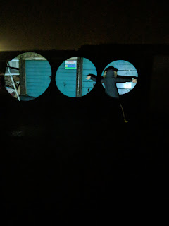 The further away you were the light wasn't so strong and the patterns on patterns didn't really work either as they were too busy. The circular light was interesting. It was fun walking around and trying to find something that would work well. It was an interesting experiment and definitely one that will help when it comes to the editing process of the animation as the different colors are going to show up differently and depending on how bright the projector is to how far away the model is will vary the light too.